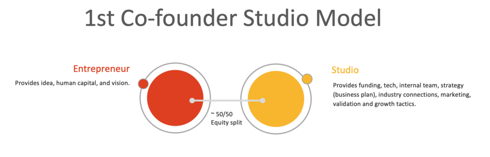 استودیو اغلب موافقت نامه ای را تنظیم می کند که در آن کارآفرین تقریباً نیمی از حقوق مالکیت خود را در سرمایه گذاری نگه می دارد. استودیو باقیمانده حقوق را دریافت می کند. استودیو از اعضای تیم خود استفاده می کند تا دست در دست کارآفرینی که این ایده را برای آنها ایجاد کرده است ، همکاری کنند.